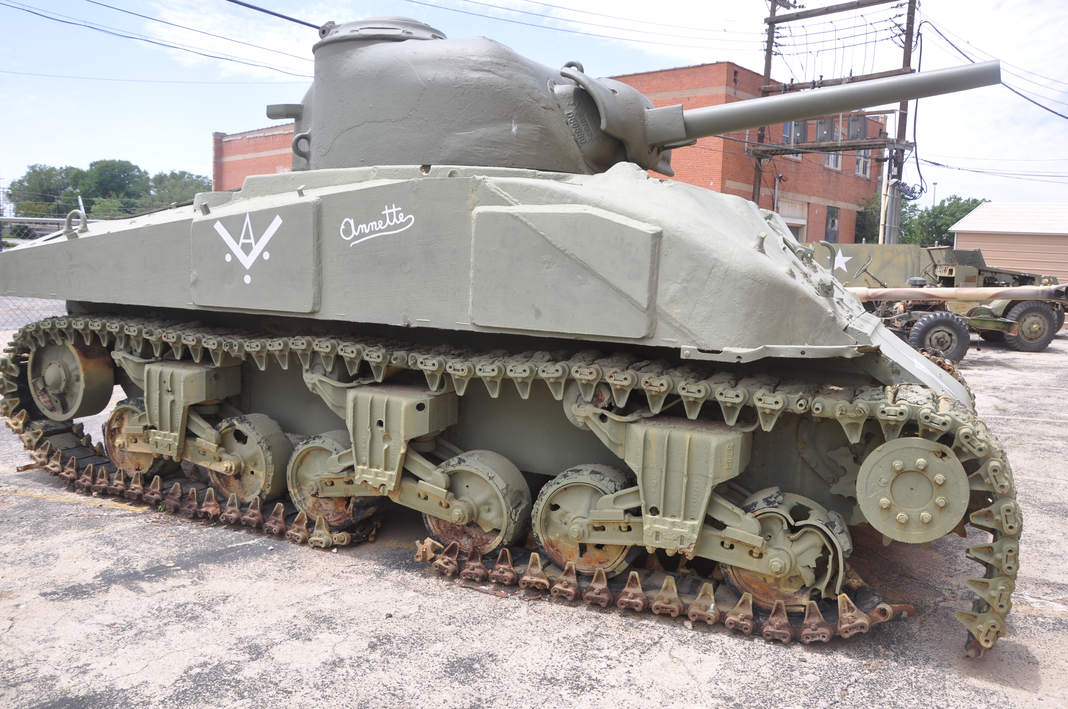 Sherman Tank on Display at the 12 Armored Division Museum. While not as powerful as the German Tiger tanks, the lighter, faster, Sherman was produced in such large quantities that we more than held our own in tank battles.