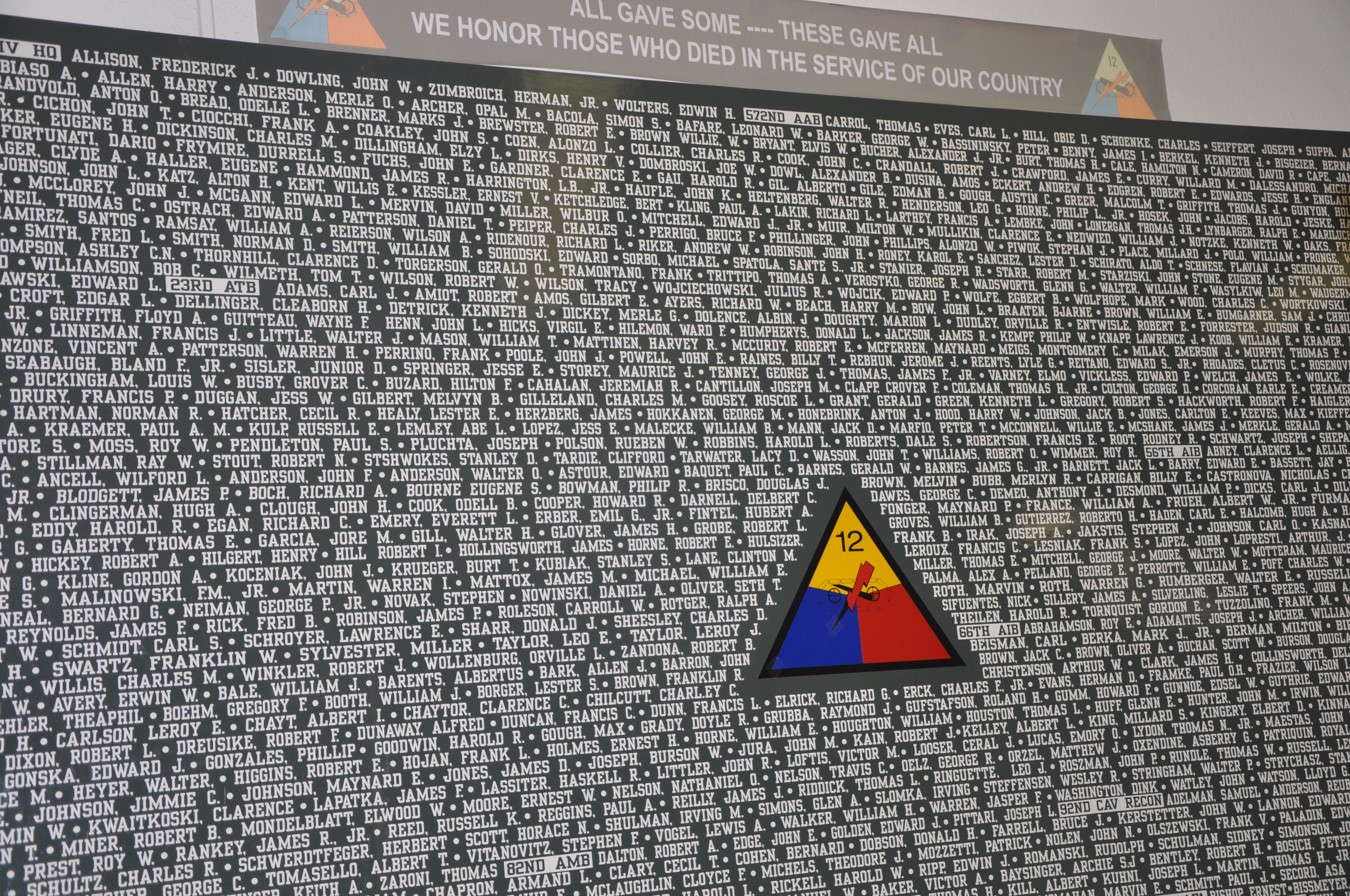 The 12th Armored Division’s Wall of Honor, saluting those division members who gave their life in combat.
